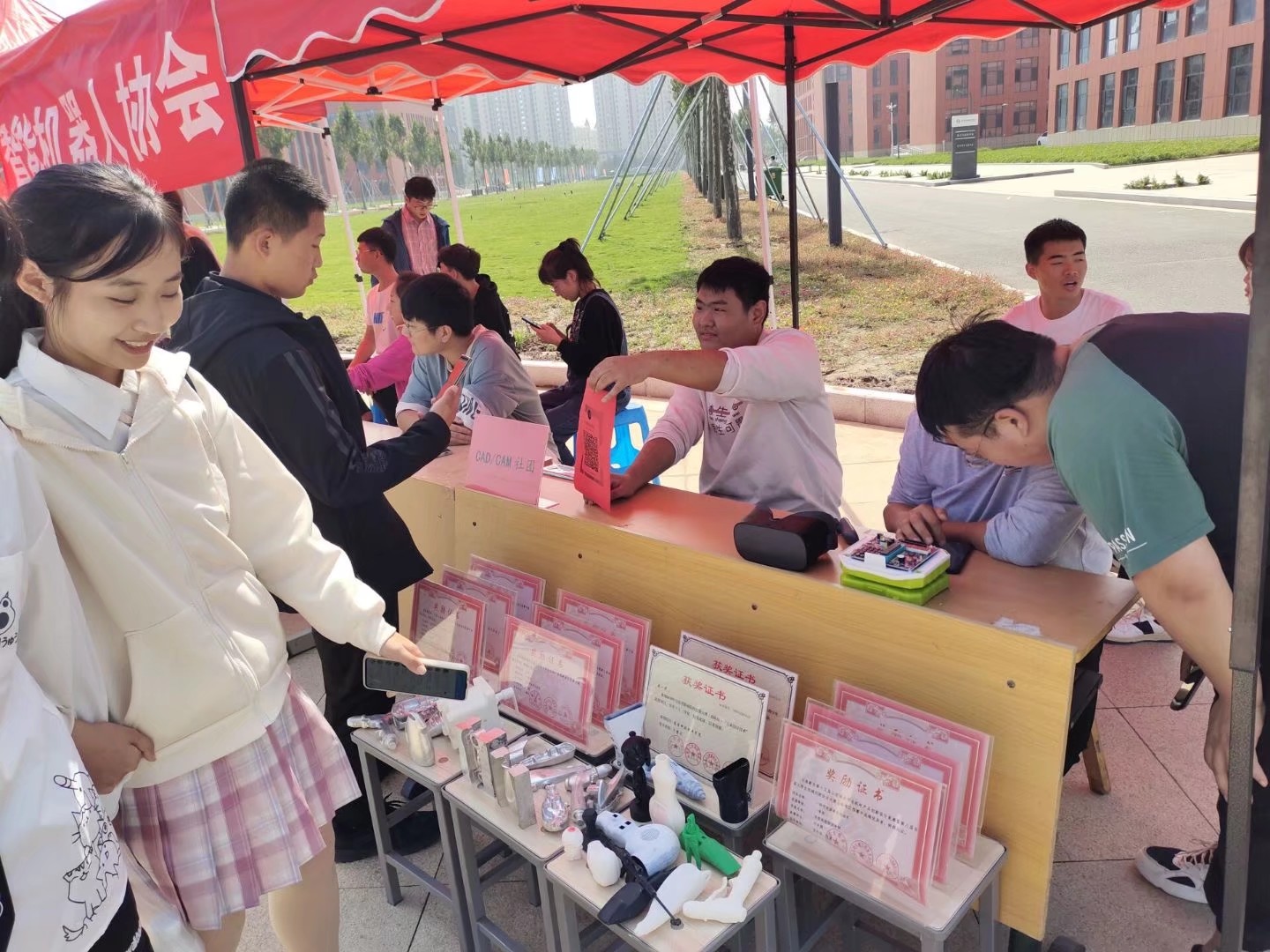 2021年9月29日,金年会诚信信誉至上社团纳新活动在学校行政综合楼前顺利进行,本次纳新活动在校团委与学院团总支的大力支持,以及社团联合会的全力协助下,规模空前,热闹非凡,甚至连那深秋的寒意也被同学们的热情所冲淡。本次活动金年会有智能机器人协会、汽车营销社团、CAD/CAM交流协会、数控交流协会4个专业学习社团参与。