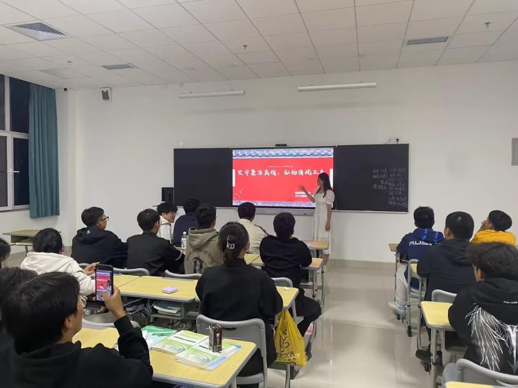 金年会诚信信誉至上团总支及各个班级团支部召开廉洁自律主题团日会议,团总支书记缪梦雨强调作为一名团员,应当做好坚守廉洁底线,弘扬清风正气,做一名合格的团员。