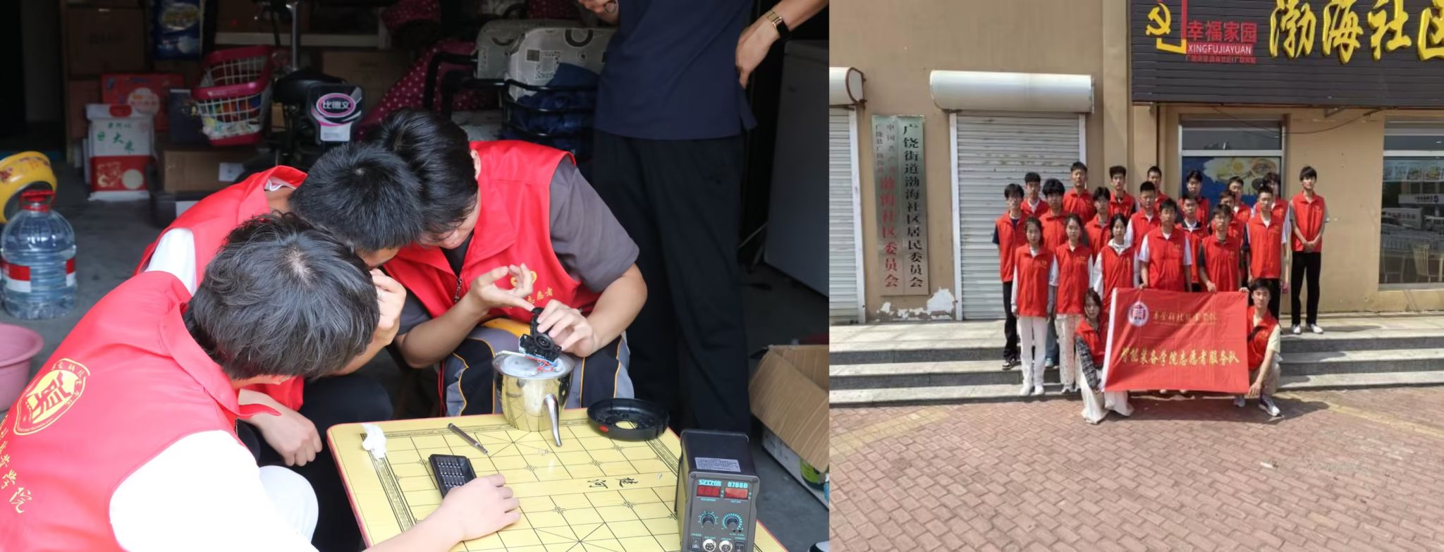 (4月27日,金年会诚信信誉至上志愿服务团队走入渤海社区,开展电器维修服务,紧跟专业特点,帮助社区居民维修水壶等电器)