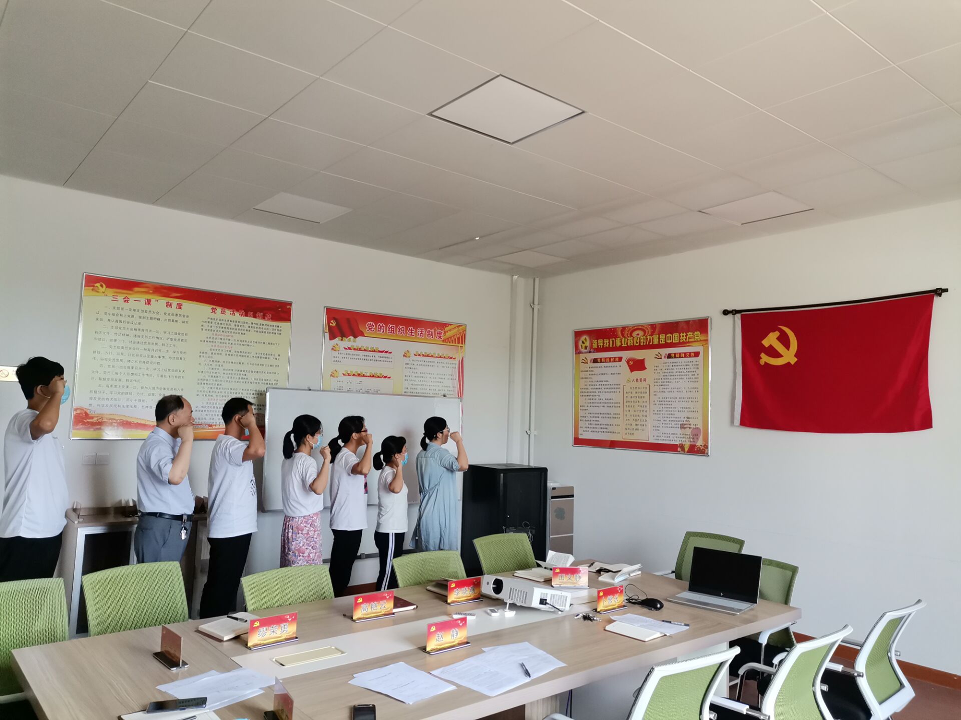 1、重温入党誓词。由赵静同志带领全体党员面向党旗庄重宣誓。