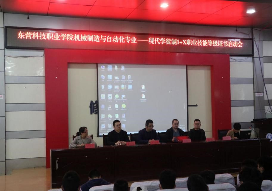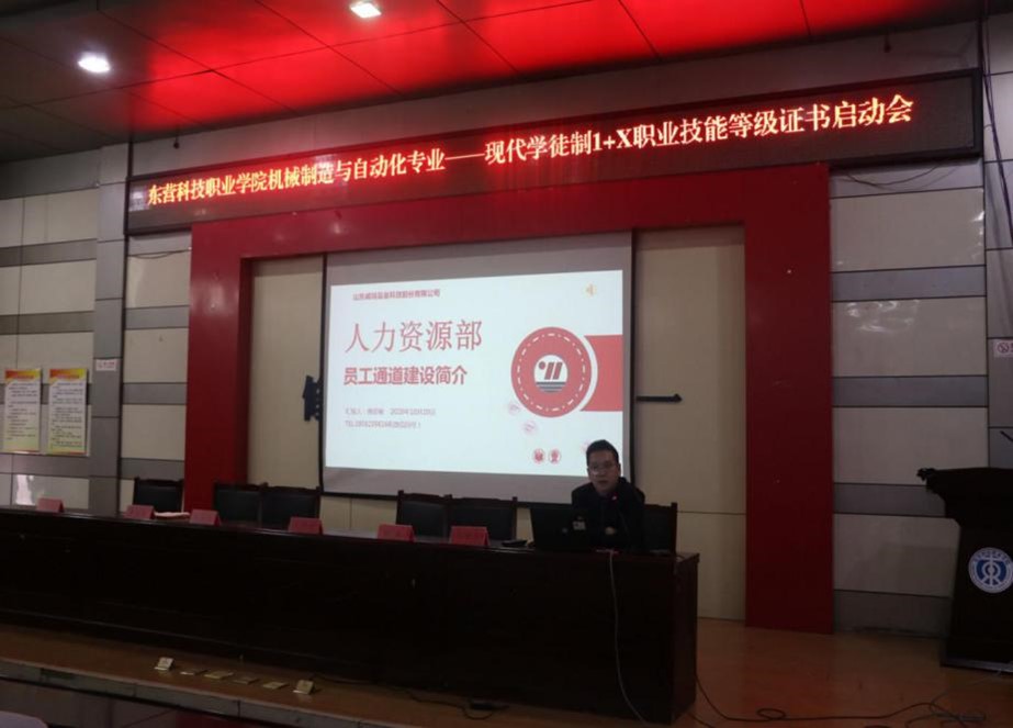 2020年10月27日下午4点,金年会jinnianhuicom机械制造与自动化专业——现代学徒制1+X职业技能等级证书启动会在金年会一号报告厅举行。机电工程学院安丰金院长、朱建平老师、高艳云老师,烟台胜信科技,股份有限公司经理葛鹏、工程师王伟林,山东威玛石油有限公司人事总经理唐显骏,参加了此次启动会。