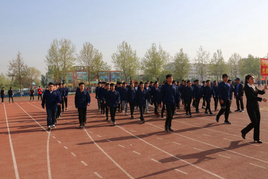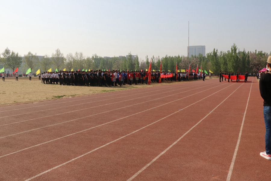 方队结束后,广大师生集合在操场上细心聆听学院党委书记,院长成永江致开幕词,并由裁判员代表魏岩宣誓