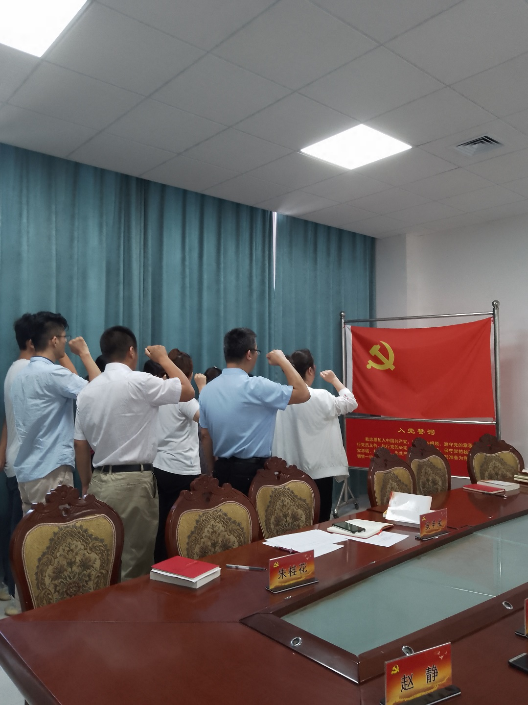 1、 重温入党誓词。由安丰金书记带领全体党员面向党旗庄重宣誓。
