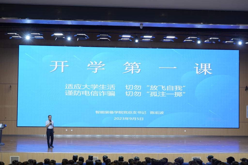 2023年9月5日晚,金年会在图书楼一楼报告厅,开展“开学第一课”讲座,讲座由党总支书记陈宏波老师主讲,全体2023级大一新生参加。